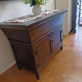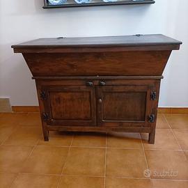 splendida madia antica con anta a ribalta e due sportelli utilizzata un tempo per fare e conservare il pane e per riporre oggetti di uso comune grazie al grande spazio interno, recentemente restaurata, misure L cm 114 , P cm. 59; H cm. 85, ben conservata vendo euro 400 ; regalo sovrastante piattaia, piatti esclusi. Mauro 3347916801