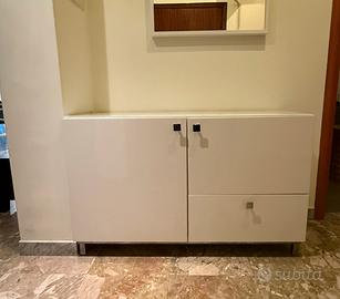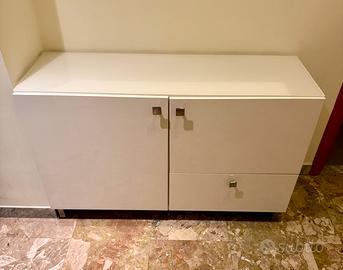 Bellissima madia bianca lucida, con vetro e cassetti. Misure 120, 74, 41. Ottimo stato, smontaggio e ritiro a carico dell’acquirente.