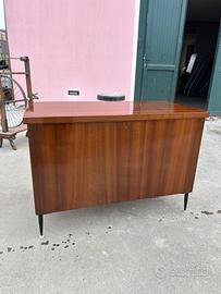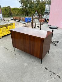 modernariato italiano mid century modern, molto bella. con impiallatura in legno e piedi in metallo sottili neri.