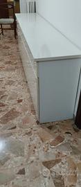 Madia colore bianco lucido 5 ante e 3 cassetti. Dimensioni L. 226 P. 44 H. 78