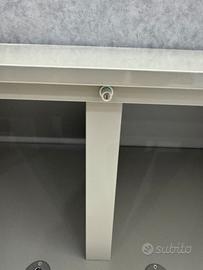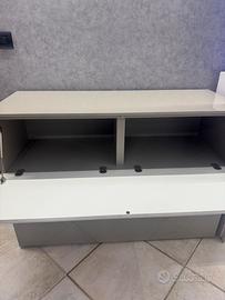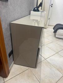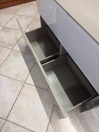 Mobile madia bianco lucido e grigio tortora con cassettone e ripiano con 2 scomparti