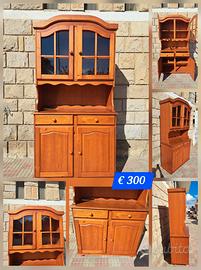 - Bellissima Credenza in ottime condizioni perché completamente restaurata. Il mobile è provvisto di 2 ante con vetri nella parte superiore per mettere bicchieri e altri oggetti preziosi e 2 ante in legno in quella inferiore, perfette per riporre pentole, bottiglie o provviste. L. 101 H. 2.00 P. 48 . Nella parte inferiore ci sono 2 cassetti capienti con pomelli in legno, comodi per posate o tovaglie. Madia con vetrinetta in legno Massello, può essere collocato in qualsiasi punto della casa, perfetta per arredare cucine, sale da pranzo o taverne in stile rustico € 360,00 SCONTATA € 300,00.