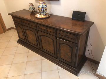 MADIA CREDENZA IN LEGNO MASSELLO 4 ANTE TINTA NOCE Lunghezza 182cm Larghezza 46cm Altezza 84cm