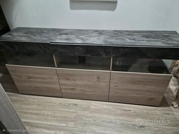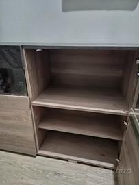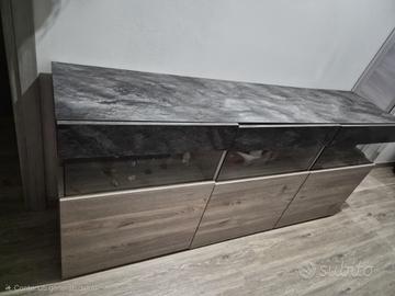 Vendo Madia moderna composta da 3 sportelli abbastanza capienti con piccola parte in vetrina come si evince in foto colore rovere e ossido / antracite