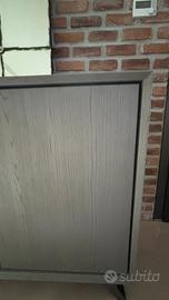 Madia dimensioni: altezza cm 92, lunghezza cm 170, profondità cm 50. Tre ante e piedini in metallo. Finitura in legno color fango con venature a vista. Chiusura/apertura ante con sistema push-pull. Due ante si aprono in modo speculare e il ripiano interno è intero. Possibilità di ritiro presso l’abitazione nella prima settimana di marzo.