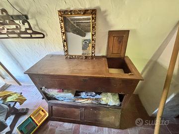 Vendo splendida madia antica di grandi dimensioni, realizzata in legno massello. Perfetta per arredare ambienti rustici o in stile vintage. La madia è in buone condizioni strutturali, ma la parte bassa necessita di essere ripresa con del mordente per tornare al suo splendore originale. Ideale come mobile da soggiorno, dispensa o anche come pezzo da collezione. Si abbina perfettamente a contesti sia tradizionali che moderni.