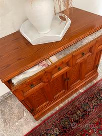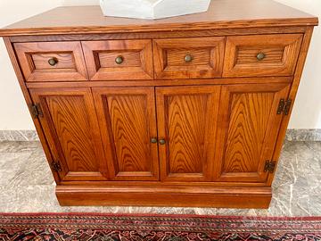 Madia di piccole dimensioni, in stile rustico e di ciliegio, bellissima per arredare il soggiorno o il corridoio, lasciando libere le pareti che potrete completare con quadri o specchi. Perfetta inoltre per riporre i servizi da tavola nel vano sportelli e il tovagliato nel cassetto.