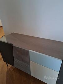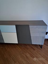 Madia in legno nuova marca Devina Nais modello zero. 16. Composta da 5 ante battenti ed un cassetto. Lunghezza cm 200 altezza cm 81,5 compreso il piedino in metallo di cm 20.