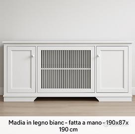 Vendo bellissima madia artigianale in legno massello, verniciata bianco opaco. Realizzata a mano, solida e dal design elegante.