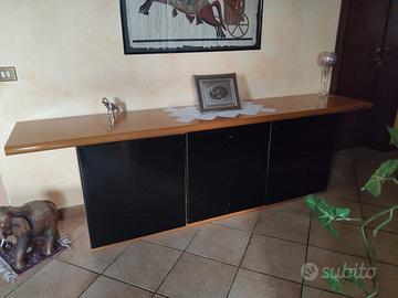 Vendo elegante madia in legno ciliegio con antine laccate nere, lunghezza 2.40 m.