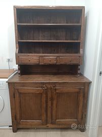 madia rustica in legno massello, venature a vista, due ante e due cassetti, e piano superiore.
