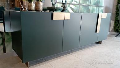 Madia Pianca laccato opaco verde bosco con maniglie e piedini in metallo bronzo anticato.