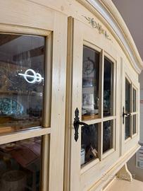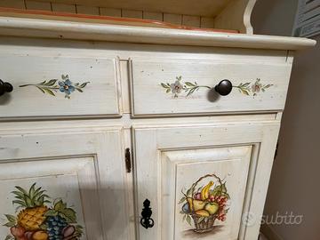 Madia in vero LEGNO MASSELLO verniciata e decorata a mano , misure Altez. m. 1.88. Larg. m. 1.50. Profond. Cm. 53.