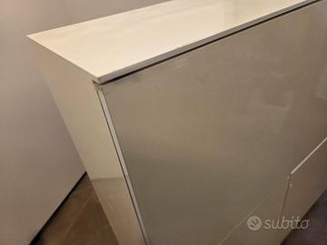 vendo madia moderna,il colore è un po' ingiallito dal tempo, il ripiano è un po' rovinato come da foto. Non spedisco