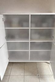 Struttura bianca effetto legno con ante bianco lucido (leggermente ingiallite dal tempo).
