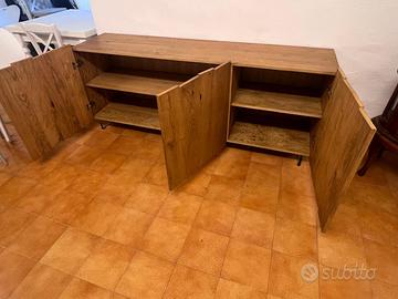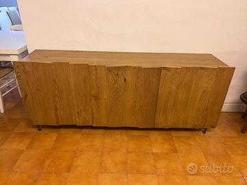 MADIA IN LEGNO FINITURA GRANO STRAORDINARIA CON LE ANTE IRREGOLARI FRASTAGLIATE E ALL'INTERNO RIPIANI.