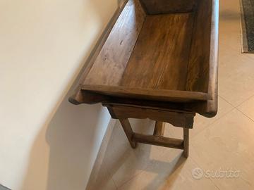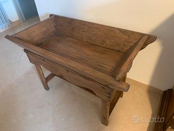 Antica madia piemontese in legno massello restaurata, in ottime condizioni. DIMENSIONI (BxHxP): 98x64x54cm max