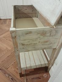 Originale Madia piemontese recuperata in appartamento zona Piazza Vittorio Torino legno dolce nodoso apertura a ribalta conteneva tazze e tazzine quando l'ho scoperta Ho aggiunto un piano in compensato oltre sul suo piano in listelli di legno incrociate per poter appoggiare oggetti sul fondo quando si apre è stato patinato in modo Country rustico con questa bella fascia stile materasso francese color lavanda al centro i piedini che non erano in buone condizioni sono stati parzialmente tagliati e sono state aggiunti questi piedi di ottone dorato La patina è molto particolare adatta per una Casa Country in stile Shabby Chic potrebbe andar bene anche come scrittoio presenta anche un livello inferiore di perline per appoggiare i cesti basi innaffiatori e quant'altro. contattarmi Anche via WhatsApp 347 7861567 prima di acquistare Grazie