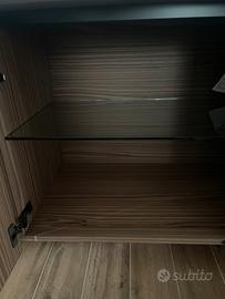 Madia Riflessi 4 ante in ottone bronzato con piano in vetro specchiato bronzo. Nuovo, in quanto l'abitazione non è abitata (la lampada non è inclusa).