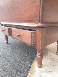 Madia rustica . La madia di fine 800, in legno di abete, necessita di un restauro alla struttura inferiore . Diversamente è sana, in buone condizioni . Dotata di due cassetti . Dimensioni : 125 x 75 x 80h