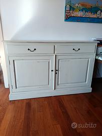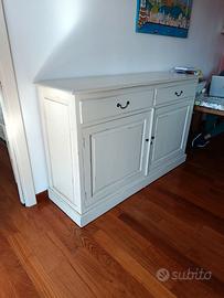 Madia bianca in stile shabby chic. Mobile in legno massello in ottime condizioni. Due cassetti e ampia spazio contenitivo. Acquistato da un produttore italiano. Caratteristiche principali: • Materiale: Legno Massello • Dimensioni totali: L 160 cm H 100 cm • Profondità: 50 cm Note: smontaggio e trasporto a carico dell'acquirente (consigliato per verificare l'integrità dei componenti durante le operazioni). Disponibile per visione e ulteriori foto su richiesta. Possibilità di sconto se si acquista più mobili venduti da me.