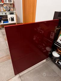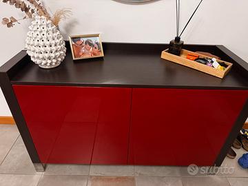 Struttura in legno wengé con ante laccate color rosso rubino, finitura di pregio e grande impatto estetico.