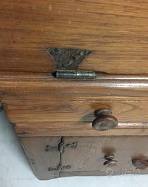 Gli accessori e le ferrature, con i chiodi compresi, sono battuti e forgiati a mano. Rifinita e lucidata a mano con cera naturale per conservare nel tempo l'inconfondibile bellezza del legno.