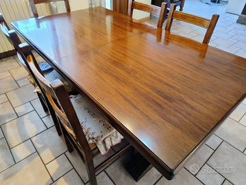 Tavolo con 6 sedie, 180x100 cm, allungabile fino a 4 metri. Materiale legno, colore noce.
