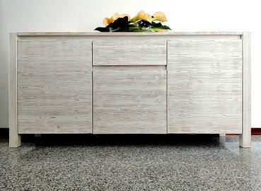 Perfettamente abbinabile al Tavolo Enea, vedi annuncio, anch'esso in Abete Spazzolato e Laccato Bianco Vecchio.