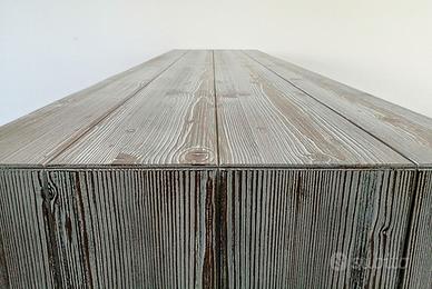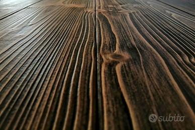 Esattamente come il Tavolone modello Acheo, vedi annuncio, presenta composizione Abete con Finitura Spazzolata e Tinta Old Brown.
