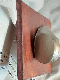 -> La scultura è applicata su una tavoletta di legno rettangolare, dal colore marrone caldo con venature naturali.
