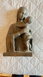 Madonna con bambino in bronzo brunito, alta circa 30 cm.