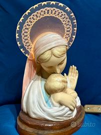 Madonna in ceramica realizzata da Arturo Pannunzio con aureola che si illumina come da foto. L’impianto elettrico è stato rifatto e all’interno monta un faretto a LED. Alcuni segni del tempo come si vede dalle foto, ma in generale ben tenuta. Alta 24 cm larga 25 cm profonda 16 cm