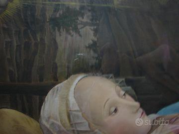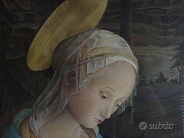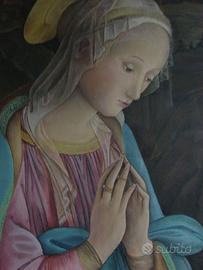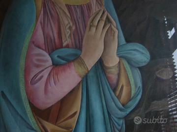 Quadro rappresentante Madonna in preghiera, tela dipinta a mano dalla pittrice Beatrice B, incorniciato.