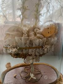 Vendo Maria bambina in cera con teca cupola in vetro, con qualche distacco dei fiori.