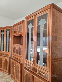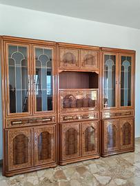 Vendo imponente credenza/parete attrezzata di alta qualità artigianale in pregiata radica di noce, lucidata a specchio. Il mobile è in condizioni impeccabili, pari al nuovo, esattamente come il tavolo coordinato (disponibile separatamente).