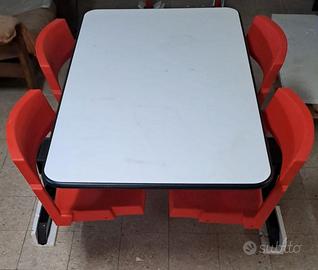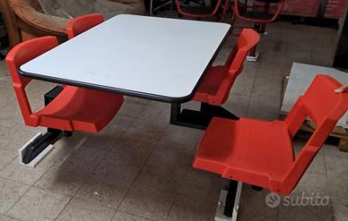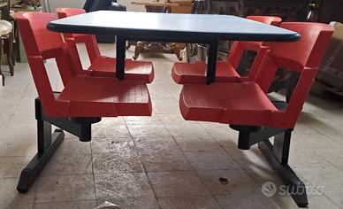 MAGIS TAVOLO MENSA O LAVORI IN GRUPPO A 4 POSTI REGOLABILI - DIMENSIONI TAVOLO CM L130XP80XH75 - INGOMBRO TOTALE CM L130XP120XH75 - PIANO TAVOLO IN BILAMINATO ANTIGRAFFIO BIANCO BORDATO NERO - STRUTTURA ROBUSTA IN METALLO VERNICIATO NERO - SEDUTE IN PPL ROSSO - MODERNARIATO ANNI 90 - UNICO - INTROVABILE - OFFERTA - TRASPORTO E RITIRO A VS CARICO DA CONCORDARE -