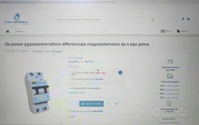 Vendo interruttore differenziale magnetotermico 2p n 25a 30ma Ge power 593004. Oggetto nuovo e mai usato vendo causa acquisto errato. Per info potete contattarmi via whatsapp al numero 388 8990212.