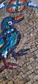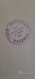 Interamente crrato dalle mani degli artigiani mosaicisti nella bottega della Cooperativa Ceramisti di Ravenna ad inizio anni '80 secondo la antica tecnica del mosaico bizantino e contrassegnato dal numero di produzione 22.