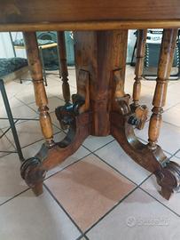 Design Tradizionale e Raffinato: La base del tavolo è un vero capolavoro di ebanisteria, con gambe tornite e intagli elaborati che riflettono una fattura artigianale di pregio. Questa struttura solida e ornata non è solo un supporto, ma un elemento decorativo a sé stante che cattura lo sguardo.