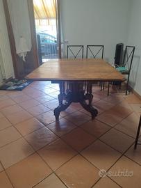 Il tavolo è in ottime condizioni strutturali, solido e stabile. La superficie in legno presenta la patina e i segni naturali dell'età, che ne esaltano l'autenticità e il carattere.