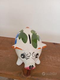 maialino porta monete friulano in ceramica, con decorazioni fatte a mano
