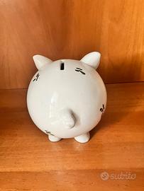 Maialino salvadanaio in ceramica , bianco con fiori dipinti a mano. Ottime condizioni, come nuovo, mai usato