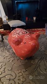 Grazioso maialino portafortuna in ceramica, proveniente dalla Thailandia. Un pezzo unico per portare un tocco di allegria.
