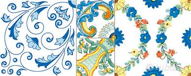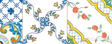 Mattonella per rivestimento bagno e cucina , formato 20x50 effetto maiolica in 4 facciate diverse . Stile vietrese . Prima scelta fondo liscio 13.00 al mq, decoro maiolica - vietri 15.00 Per maggiori info Mostra numero - Mostra numero
