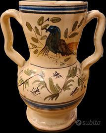 Anfora in ceramica artigianale decorata a mano proveniente da Grottaglie (TA), prodotta dalla storica bottega Nicola Fasano. Altezza 20 cm.