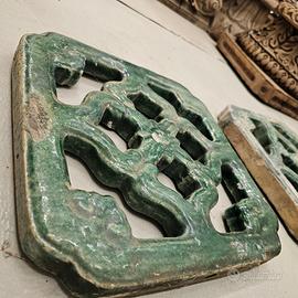 N. 21 Elementi tipo breezeway in maiolica di origine cinese del periodo Ming o Qing, dimensioni 32x32cm, sp. 4cm, utilizzate nell'arredo di giardini esterni, periodo XIX secolo - inizio XX secolo - Prezzo cadauno