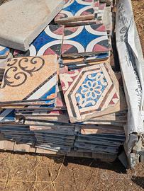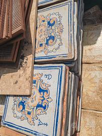 piastrelle maiolicate, originali, mattoni in cemento decorate non, coppi antichi di tutte le dimensioni, piastrelle dal 10x10 al 300 x100cm vendita con regolare fattura. Più di 300 formati di rimanenze di magazzino,