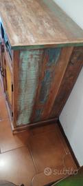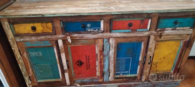 Vendo la mitica credenza di Maisons du Monde "Recup", in legno riciclato, multicolor, cornice in legno, parte centrale delle ante in metallo stampato, rifinitura vernice effetto invecchiato, maniglie di recupero in metallo, ogni credenza è stata fatta unica, non esiste una credenza uguale, larghezza 1,65x 45x90 di altezza, ritiro solo a mano