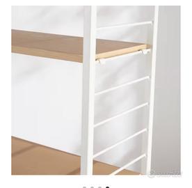 - Grazie alla sua struttura in legno chiaro e metallo bianco, questa libreria si integra facilmente in ogni stile di arredamento, dal moderno allo scandinavo‑chic.